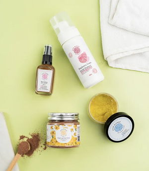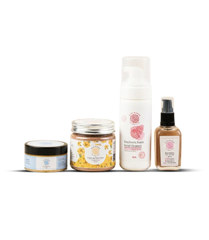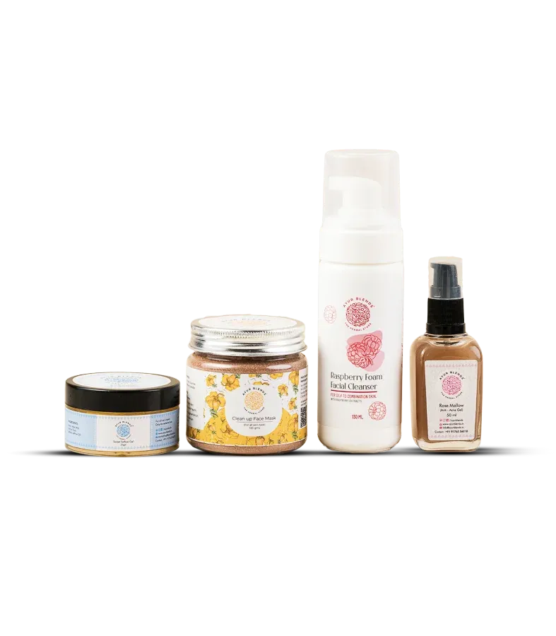 The Ayur Blends Anti Acne Kit for combination to oily skin type comes with our Raspberry Foam Cleanser, Rose Mallow and Sunset-Saffron gels along with the Clean Up Face Mask that together work to improve your skin texture and improve overall skin health. It’s time to change your cleansing routine! Our Anti Acne Kit helps in treating acne and fading blemishes to leave your skin with a healthy glow.