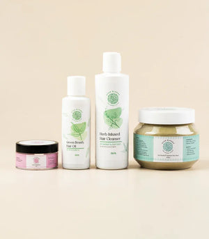 Green Beauty Oil - 90 ml | Anti-Dandruff Treatment Hair Mask -120ml | Herb Infused Hair Cleanser - 250ml | Leave In Conditioner - 150ml