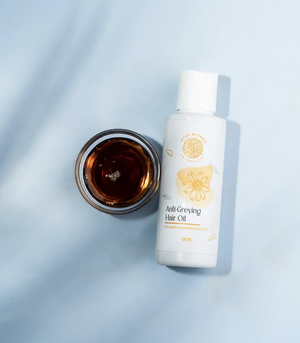 The Ayur Blends Anti-Greying Hair Oil contains karisalankanni keerai, kalonji and maruthani that adds a powerful shine to your hair. It also contains aloe vera, cold pressed coconut oil and brahmi that add the volume to your hair you always wanted. Prevent premature greying and grow strong! We recommend using it daily for healthy hair growth.