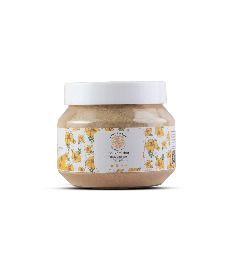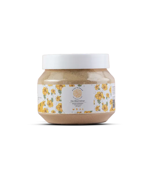 Our De-Blemish Exfoliator is unlike any other exfoliator. Made with navara rice which is known as the mother of all cures, along with the healing properties of avarampoo that keep all kinds of skin irritations away, it also contains egg shell, rose peel and orange peel that remove dead cells, reduce pigmentation, and provide nourishing care for soft, healthy skin.